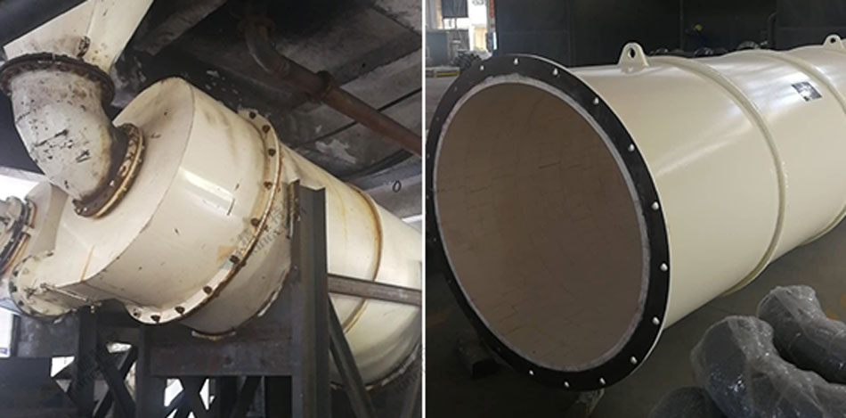 精城公司的技術人員,通過對旋流器不同部位磨損程度進行分析,采用氧化鋁陶瓷和ZTA陶瓷相結合,重磨損部位采用ZTA陶瓷,其它部位采用95氧化鋁陶瓷,達到設備整體磨損均衡,不僅提升產品的性價比,而且大大延長了旋流器的使用壽命。