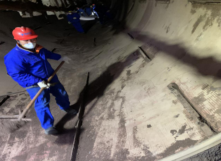 450㎡燒結車間一次混合機耐磨陶瓷安裝施工現場圖片